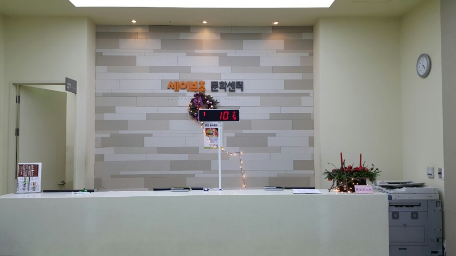 세이브존 문화센터내에 접수용 순번대기시스템을 설치 하였습니다..... All 무선으로 구축하여 발행기를 원하시는 공간에 설치 해 드렸습니다................